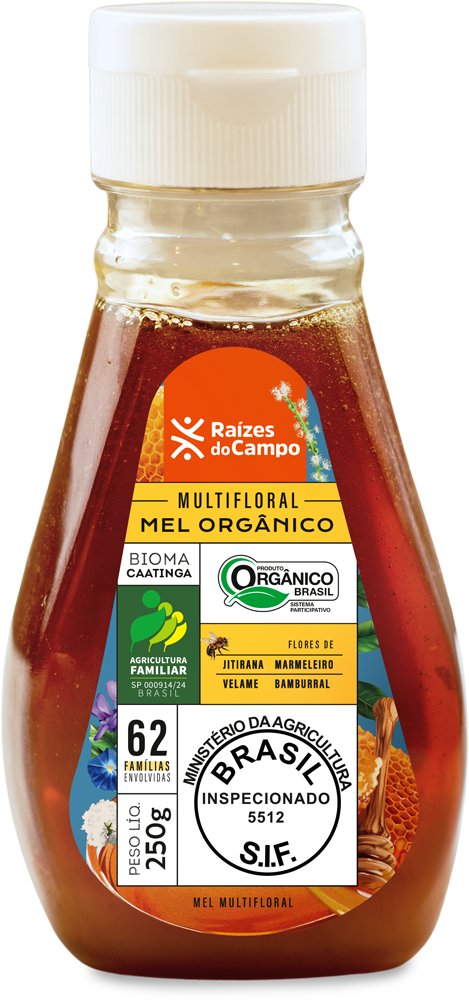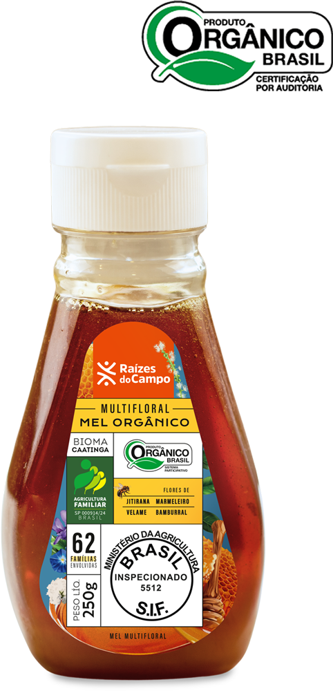 CERTIFICAÇÃO ORGÂNICA E SELO DE INSPEÇÃO FEDERAL: A certificação garante que não há substâncias prejudiciais, como pesticidas, antibióticos, fungicidas e metais pesados no mel. O mel possui o selo de inspeção federal, que garante a origem e a qualidade do produto.